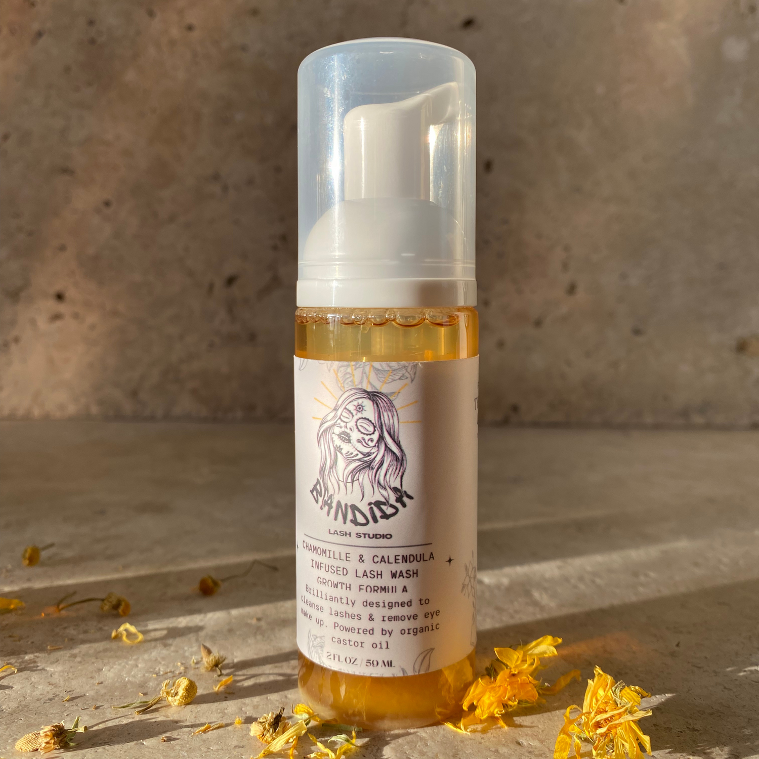 Eyelash Extension Shampoo + Brush Foaming Lash Wash infused with Organic Chamomile & Calendula, powered by Organic Castor Oil 2oz