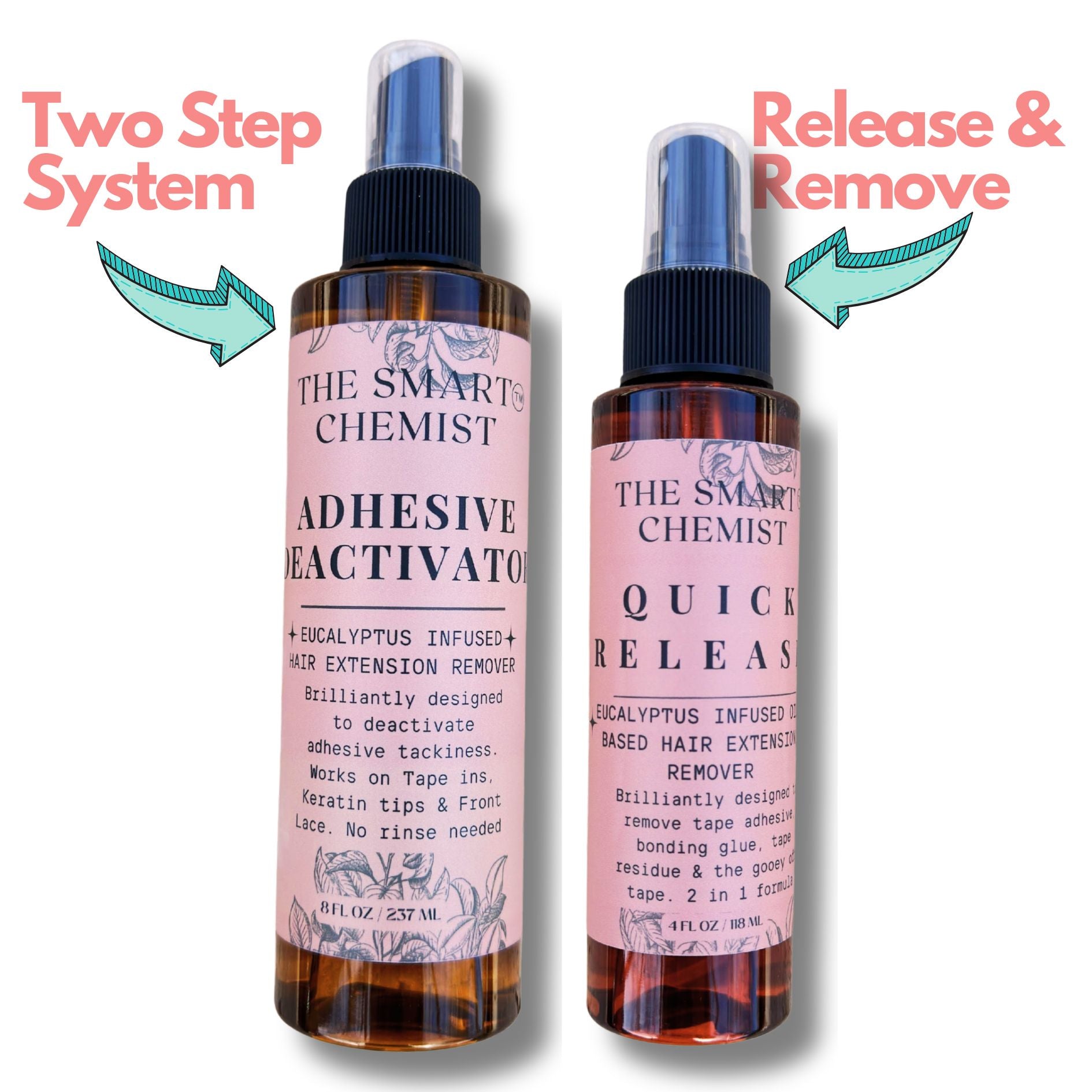 Adhesive Deactivator aka No 1: Discover a faster and easier way to remove your hair extensions with the Adhesive Deactivator Remover. Our powerful formula effortlessly releases the bond between extensions and hair, deactivating the tackiness of the bond so you can remove hair extensions no rinse needed. Works on Tape In, Keratin, Quick Weave and Front Lace Wig extensions for easy removal and reapplication. Perfect for correcting mistakes in application no rinse needed. Make tape in maintenance quick and easy with Adhesive Deactivator Remover. This formula is used to release tape adhesive bond. Proceed with the Quick Release to remove any residue left from Extension wear.